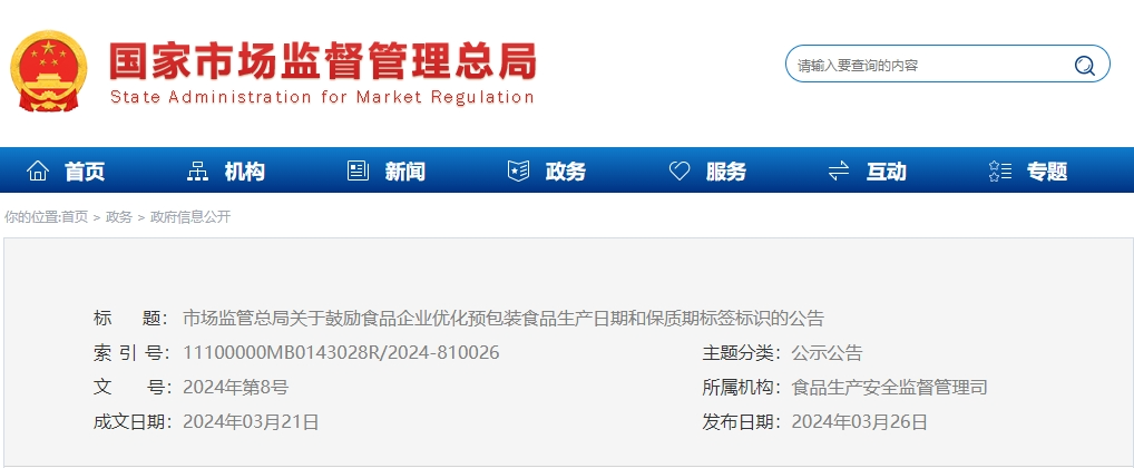 市場監(jiān)管總局關(guān)于鼓勵食品企業(yè)優(yōu)化預(yù)包裝食品生產(chǎn)日期和保質(zhì)期標(biāo)簽標(biāo)識的公告